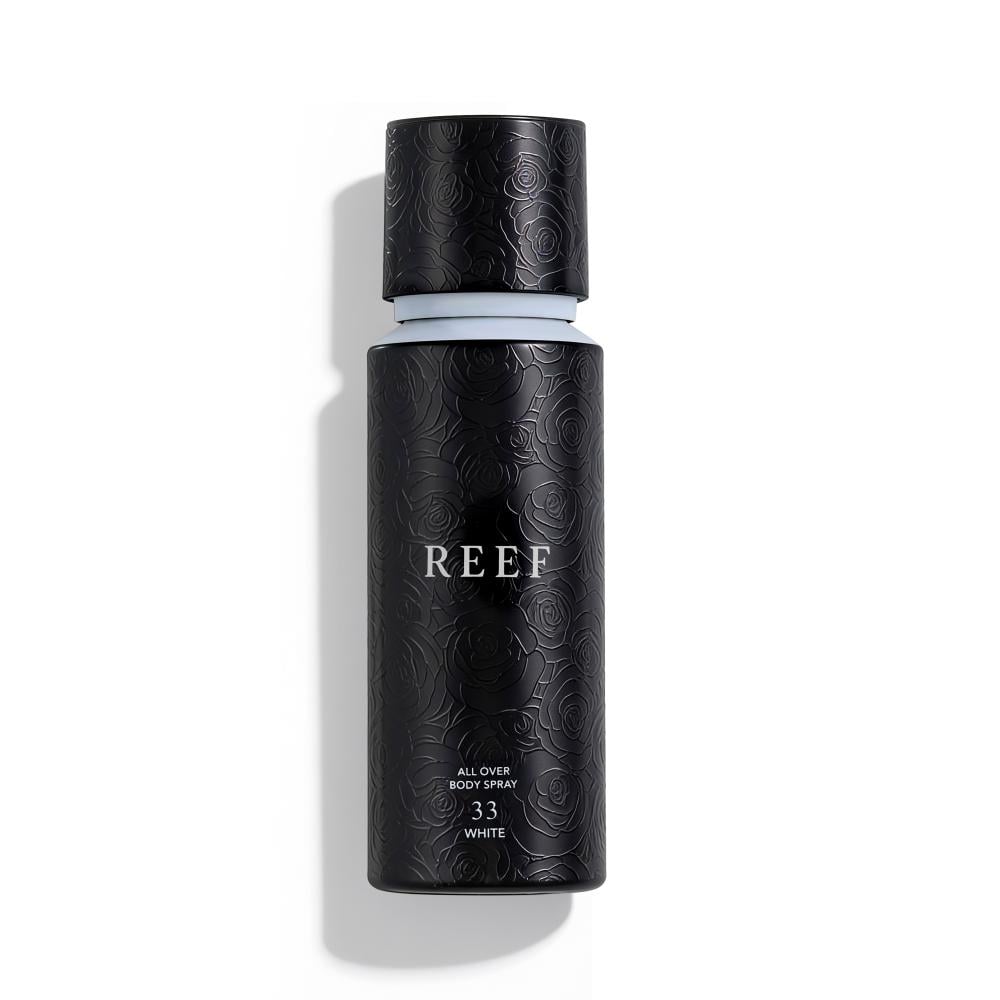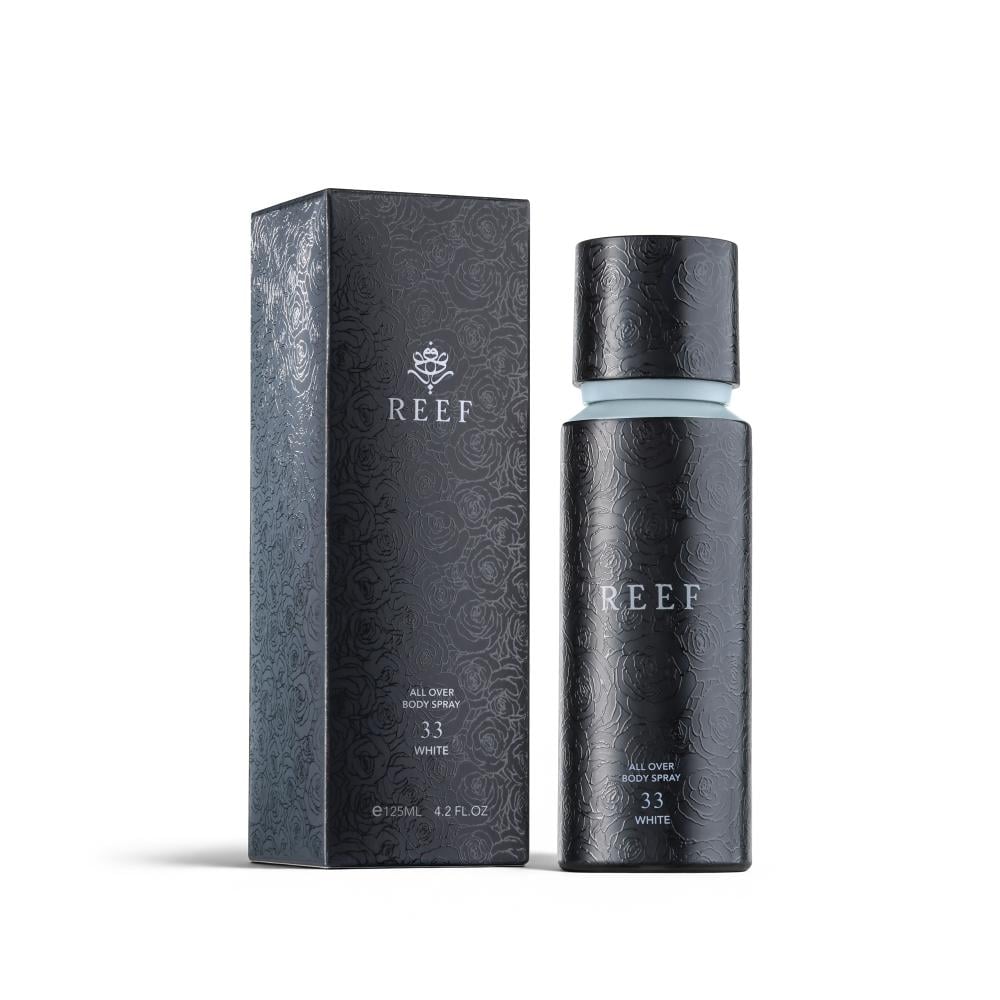 REEF 33 White body spray opens with a first burst of sweet and refreshing berry scent, giving your skin a pure fruity touch that instantly revitalizes.